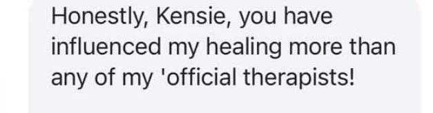 Once the group has begun, each member will have one additional 1:1 session they can use with Kensie. This can be used to discuss questions, concerns, or specific experiences you are going through/have gone through. This session must be used within one week after the last group session.